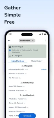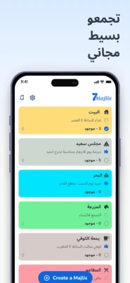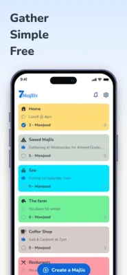 Finally: 7Majlis is designed to be used as it suits you and your friends. For example, you can create a Majlis for "Hiking" and everyone of your friends who is interested in Hiking join this Majlis, now you can send Hayakom and they will all be notified about your plan, and you can instantly know who is coming.