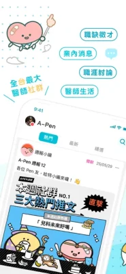 The largest doctor community in Taiwan—the platform that truly understands doctors! - Taiwan's biggest doctor recruitment & networking hub - Stay up to date: AI-generated summaries of top medical journal articles, free of charge - Curated physician lectures—both online and in person—so you can grow with your peers - Freedom to interact under your real name or anonymously; unlimited public discussions and private messaging - Complete weekly missions to earn monthly rewards worth over NT$100 - Industry news, career advice, professional exchange—A-Pen is your trusted partner throughout your medical journey