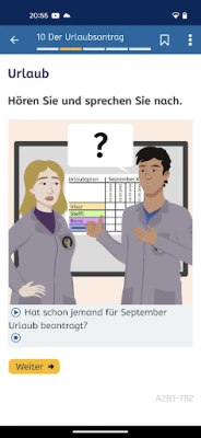 A2-B1 seviyesinde ücretsiz Almanca öğrenin. A2-B1-Beruf; https://vhs-lernportal.de/deutsch sayfasındaki “A2-B1-Beruf” Almanca kursunun mobil versiyonudur. “A2-B1 Beruf”un tüm fonksiyonlarını uygulama ile offline olarak da akıllı telefonunuzda kullanın.