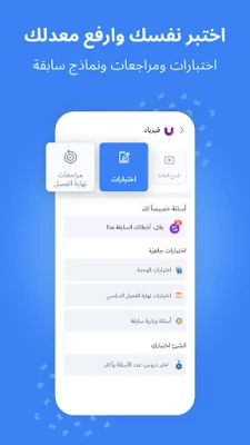 أكبر بنك من الأسئلة والامتحانات وإنشاء اختبارات خاصة بك حتى تتدرب وتختبر فهمك