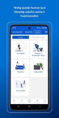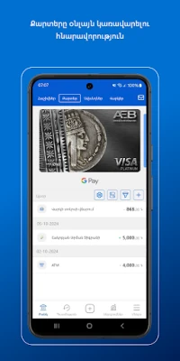Armeconombank’s mobile application allows to manage accounts without visiting the bank.