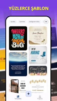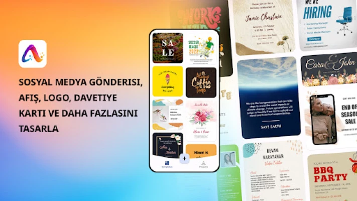 - Etkinlik tanıtımı, sosyal medya pazarlaması ve her tür sosyal medya grafiği için poster, el ilanları veya afişler oluşturun.