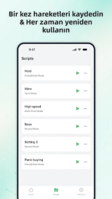 Kayıt Modu: Karmaşık jestleri—dokunmalar, kaydırmalar ve uzun basmalar—yakalayın ve otomatikleştirin, kolayca tekrar oynatma yapın ve görev tekrarı işlemlerinizi verimli hale getirin.
