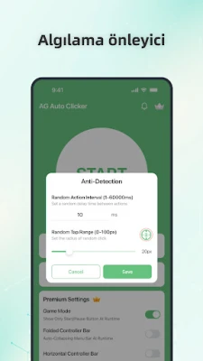 Zamanlayıcı Başlat: Dokunmalarınız için özel bir başlatma zamanı ayarlayın—programlı otomatik tıklama için harika.