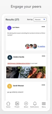 Ag Solidarity Network (ASN) is a member-led community that connects a diverse network of farmers, farmer-workers, homesteaders, and food system professionals who are collectively growing the organic farming movement. ASN is a collaborative space for mutual exchange of skills, expertise, peer support, and learning. Join a group, post classifieds, and find events near you. Search the People Directory to find users with similar or different skill sets and interests, connect with organic farming specialists, and build community.