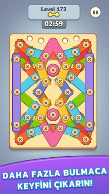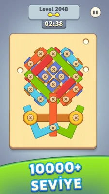 10.000'den fazla seviye, basitten uzmana kadar, becerilerinizi yavaşça geliştirir. Her seviye, sizi her zaman taze tutan benzersiz levha ve vida bulmaca tasarımlarıyla doludur!
