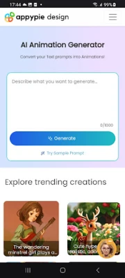 Appy Pie’s AI Animation Generator allows you to create animation and cartoon videos for your business or personal use. Transform Text-Based Prompts into Dynamic Animations with AI Animation Maker. Make your own animations simply from text prompts by using our online AI-based Animation Generator tool. Bring your Animation ideas into reality with AI for free!