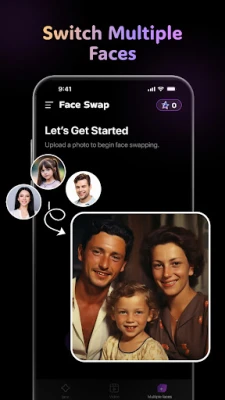 AI Face Swap is an amazing app that utilizes cutting-edge AI technology to seamlessly swap faces in photos with the utmost precision and realism. Whether swapping faces one by one or multiple at once, this app delivers quick and effortless results. With the option to select photos from your gallery or capture new ones with your camera, the app gives you full control to choose the faces you want to swap.