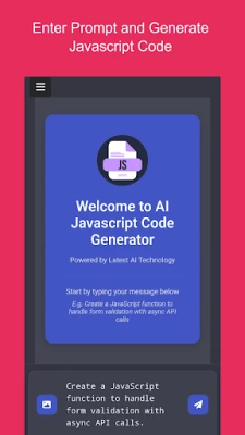 AI Javascript Code Generator is an advanced AI-powered tool designed to help developers, students, and programmers generate Javascript code instantly. Whether you need functions, event handlers, API calls, form validations, or complex algorithms, this app provides quick and accurate Javascript solutions.