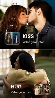 AI Kiss Video Maker: AI Hug Me to effortlessly craft two photos into live French lip and hug video clips. AI Anime Maker to turn your ordinary photos into anime looks from a variety of different anime looks. Make AI Kiss Video, AI Hug Video, AI Propose Video, and AI Heart Video by just using your photos without any professional editing skills. Turn photos into hilarious videos! Make characters in the photos have live interactions like kissing, hugging, proposing, and more with the AI Photo Animator App. AI Video brings old photos to life in a warm hug, romantic proposal, lip kiss, or heart-making video with them—whether they are near or have passed away. Let precious memories come alive again with AI Kiss Video Maker: AI Hug Me App.