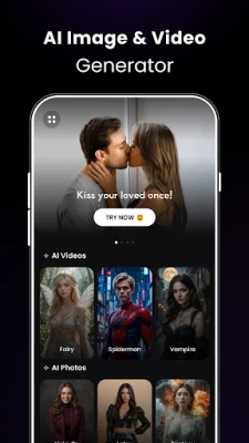 AI Kiss Video Maker to turn your loved one's photos into live animation video effects.