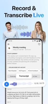 * Professionals – Capture meeting minutes, generate summaries, retrieve insights instantly making it easier to stay present and engaged in discussions.