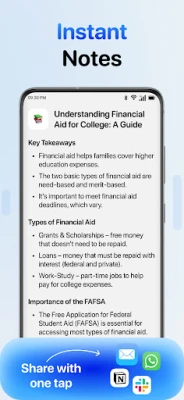 * One-tap summaries of any recording or text, get actionable to-do lists, notes