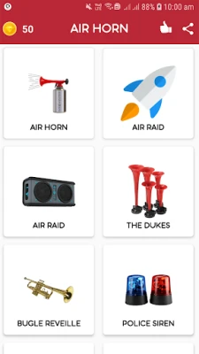 Turn your Android into an air horn, Train, Police Siren, Ambulance Mermaid, Car and Truck, Air Raid, Cavalry, French and USA Fire Truck siren.