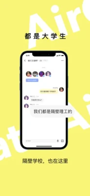 【不开口加好友】AirChat 利用先进的技术(大数据+蓝牙+GPS),在校公选课堂上、学校食堂内、校园的操场上、学校附近的酒吧和小吃街内,快速的让你添加到心动 Crush 的好友!【组队扩列】在校园内找不到学习搭子?王者搭子?吃鸡搭子?喝酒搭子?快使用 AirChat 的组队匹配,喊上你的舍友一起和找到学长学姐学弟学妹一起吧~