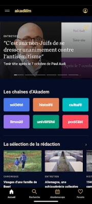 L'application officielle d'Akadem vous donne un accès complet à des milliers de vidéos, podcasts et articles. Plongez dans des sujets variés tels que l'histoire, la culture, la religion, la philosophie, et les grands débats du monde juif contemporain, directement depuis votre appareil.
