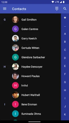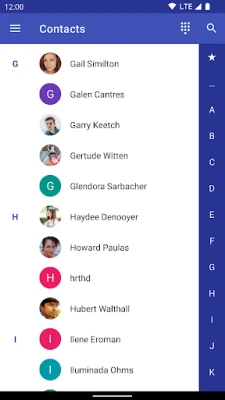 Daha hızlı arama için yan dizini kullanarak kişi listenizde kolayca gezinin.