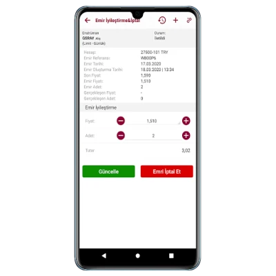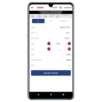 Bu uygulamayı kullanarak pay piyasası, vadeli işlemler ve türev işlemler piyasalarında hızlı, güvenli ve kolay alım-satım yapabilirsiniz. Ayrıca hesap portföyünüze anında ulaşabilir, en çok yükselen ve düşenleri ısı haritası üzerinden takip edebilirsiniz. Kokpit ekranı sayesinde hisse ve VİOP emirlerinizi tek dokunuşla verebilir, sürükle-bırak ile düzeltebilir veya iptal edebilirsiniz.