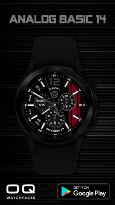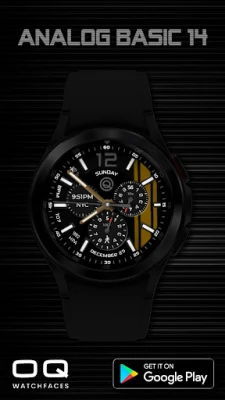 1. Tap on OQ logo to open Watch settings menu. 2. Tap on date text to open watch calendar app. 3. Tap in battery chronometer center to open watch battery settings menu. 4. Background color option changes color of background. 5. Color option in customization menu deals with various styles of hands and text color combinations. Please see the screen previews for various examples. 6. The outer index can be dimmed according to your taste from customization menu 7. 2 x Dim Modes are available separately for Main and AoD Display. 8. Tap inside steps chrono to open steps counter.