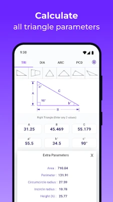 📐 All-In-One Trigonometry Calculator: Unleash the full potential of trigonometry with a trigonometry calculator app that calculates circumcircle and incircle diameters, arc measurements, and even PCD (pitch circle diameter) for an extensive range of geometrical shapes.