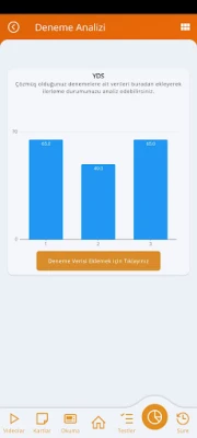 - Çözmüş olduğunuz deneme sınavlarına ait doğru ve yanlış bilgilerini sisteme girerek grafikler ile başarı durumunuzu takip edebilirsiniz.