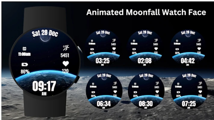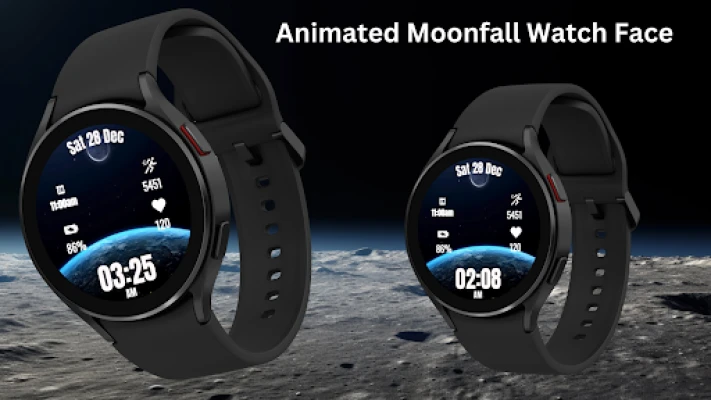 Experience the mesmerizing beauty of space with the Animated Moonfall Watch Face for Wear OS! This captivating watch face features an animation of the moon gently descending towards Earth, creating a unique and calming visual display. Perfect for space lovers and those who enjoy dynamic, celestial-themed watch faces.