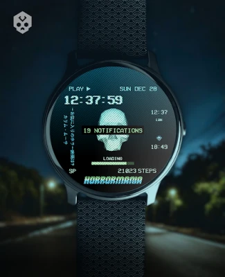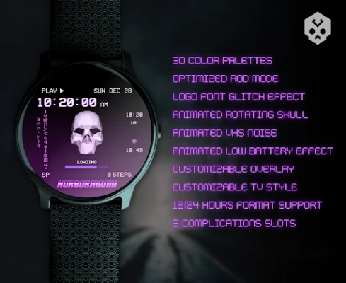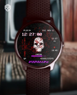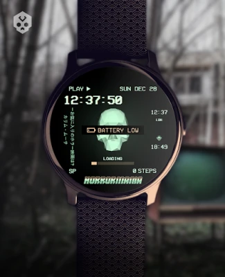 An horror / PSX style themed watch face, full of information and highly customizable! Includes an animated low poly skull and the VHS static noise effect!