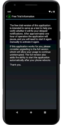 Bu uygulama sizin için çalışırsa, kullanım kesintisiz olarak devam etmesine izin verecek tam sürüme düşünün ve size cihazınız açıldığında otomatik olarak programını başlatmak için yeteneği verin.