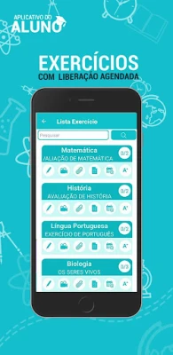 Pode ter acesso à materiais disponíveis pelos professores, exercícios e provas online, vídeo aula, arquivos, anotações, agenda.