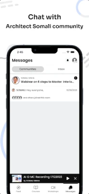 But Architect Somali's AI-Design is more than just a learning platform – it's a community of like-minded professionals who are committed to helping each other succeed. The app features a community feed where you can share ideas, ask questions, and connect with other members. You can also participate in workshops, join message rooms, and access a wide range of resources to help you stay on top of the latest trends and developments in the industry.