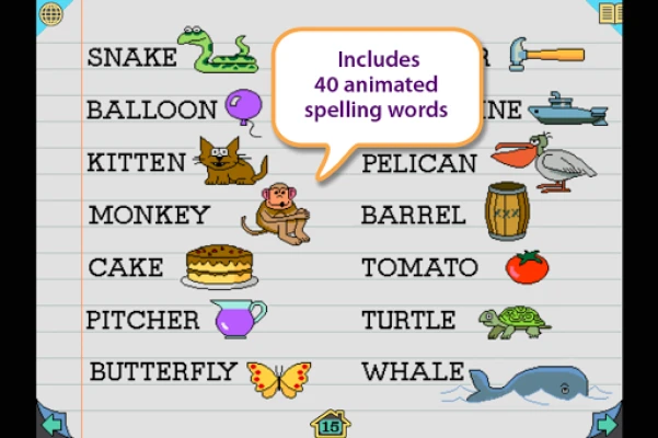 • 40 interactive spelling words, each fully animated to reinforce the word meaning
