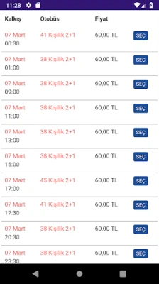 Uygulama üzerinden; seferleri görebilir, bilet alım işlemlerinizi yapabilirsiniz.