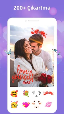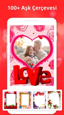 Gerçek bir aşk fotoğraf editörü olan True Love Çerçeveleri, kalp, çiçek, öpücükler, kelebek ve diğer birçok özel tatil çıkartması gibi aşkla ilgili çıkartmalarla doludur. Kendi aşk anılarınızı oluşturmak için bunları fotoğraf çerçevelerine veya aşk fotoğraf kolajına ekleyebilirsiniz. Sevdiğiniz kişiye duygularınızı söylemekten çekiniyorsanız fotoğrafa pek çok yazı tipi ve renk içeren metinler ekleyerek dile getirilmeyen sevginizi ve şefkatinizi göstermeniz yeterli.