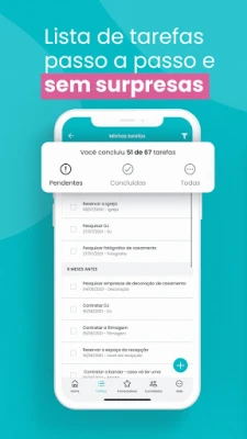 Sabemos quanta expectativa é gerada em todos os envolvidos de um evento, mas com o nosso aplicativo, todos terão sempre nas mãos os detalhes da organização do grande dia para que cada momento seja divertido e tranquilo.