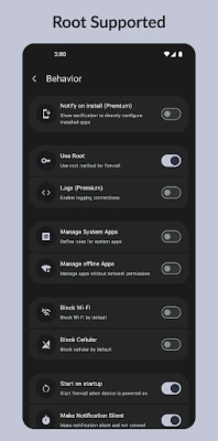 - Network Access Control: Lets users monitor and block network connections for all apps, including system apps, preventing unauthorized data transmissions.
