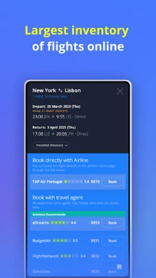 We search flights on major travel sites and directly with the airlines too, to give you the world’s largest selection of flights and prices.