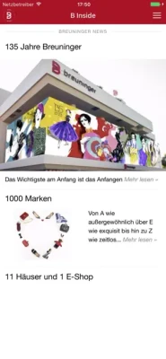 B Inside ist die App für Mitarbeiter und Freunde der Unternehmensgruppe E. Breuninger GmbH & Co., die exklusive Einblicke in unsere Welt aus Fashion und Lifestyle bietet.