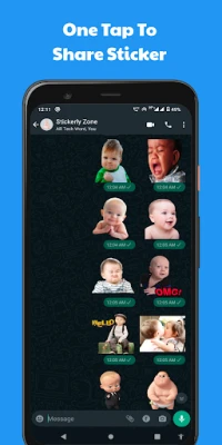 Express yourself with a touch of your favorite stickers and share stickers on WhatsApp.