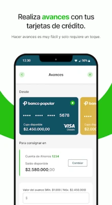 • Hacer avances de tarjeta de crédito a cuentas del Banco Popular