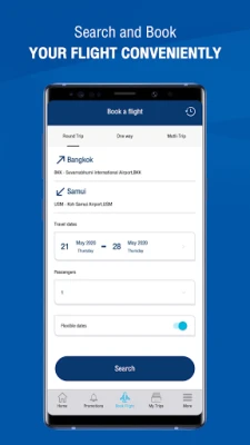 With Bangkok Airways application, you can search and book your flight conveniently, easy to log in and manage your FlyerBonus profile.