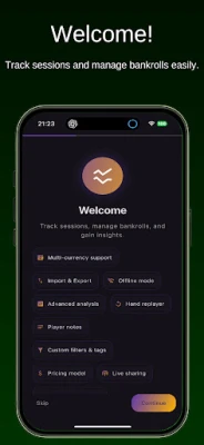 Bankroll Buddy, poker sonuçlarınızı takip etmenin ve bankroll kontrolünü korumanın sade ve hızlı yoludur. Cash oyunlar ve turnuvalar için canlı veya çevrimiçi oturumları kaydedin, birden fazla bankroll yönetin ve net istatistikler ile grafiklerle sonuçları içgörüye dönüştürün.