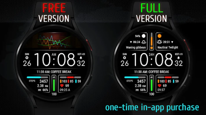• This watch face independently measures your heart rate. This watch face does not receive data from stock Wear OS heart rate apps.