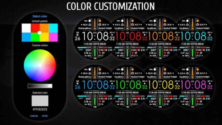 • All information about sunrise / sunset and moonrise / moonset, etc. is calculated by the watch face independently of stock apps.