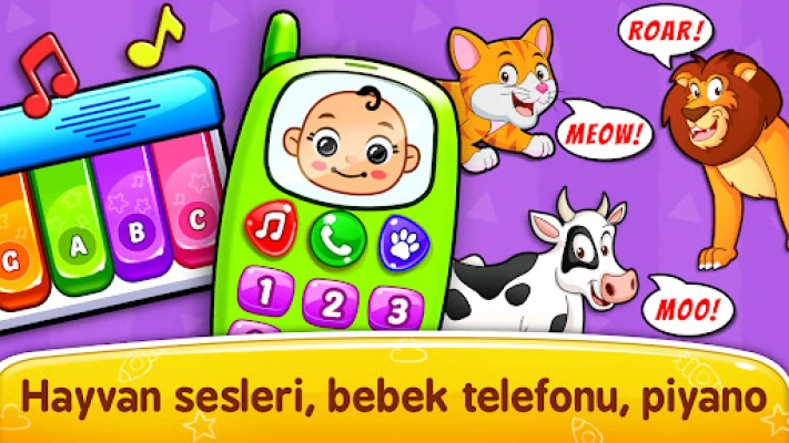 Bebek piyano telefonu oyunları ile öğrenmek eğlencelidir ve burada bebekler için oyunlar meşgul edecek çok sayıda mini oyun ve öğrenme etkinliği vardır. Hayvan resimleriyle başlar, çocuklar çıkardıkları sesleri eşleştirebilirler. Ayrıca balon patlatma Çocuk Oyunları, müzik aleti çalma oyunları, eğlenceli aktiviteler ve daha fazlası var.