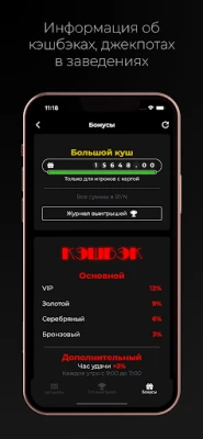 - Блокировка/разблокировка карты. - Установка шага зарядки на игровой автомат. - Контроль баланса. - Управление множеством карт через единый аккаунт. - Просмотр списка игорных заведений и их статистики - Просмотр крупных выигрышей, сделанных в игорном заведении - Анализ статистики игровых автоматов в виде удобных графиков - Просмотр cписка бонусов игорных заведений - Просмотр максимальных кэшбэков игорных заведений - Просмотр ранга карты - Отсеживание актуальных событий - Турниры в режиме реального времени