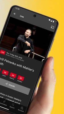 Closer to the music: In the Digital Concert Hall, you always have the best seat in the house! Each season, over 40 concerts are broadcast live and then offered in the on-demand archive. There are already hundreds of concert videos featuring all the stars of classical music, plus interviews, films and playlists.