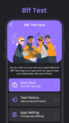 Discover who your true Best Friend Forever (BFF) is with the BFF Test app! True friendship is precious, and now you can put it to the test with fun and entertaining quizzes. Answer a series of questions, and our unique algorithm will calculate the strength of your friendship. Whether you're looking to bond with your friends or simply have some fun, the BFF Test app is the perfect way to celebrate the special connections in your life.