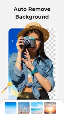 Transform your photos in seconds! Instantly remove backgrounds, create transparent or colorful backdrops, and enhance your images with powerful editing tools — all from your phone.