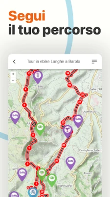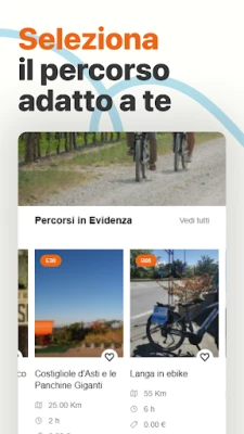 Con l'APP BikeSquare puoi scegliere il percorso, visualizzarlo per avere un'anticipazione di ciò che vedrai, ma soprattutto potrai usare la funzionalità navigatore per essere sicuro di non perderti mentre pedali. Sull'APP trovi inoltre i punti di interesse, gli hotel, i ristoranti, i musei e le cantine amici della bici (elettrica). In questi punti sarai sicuro di essere accolto con simpatia e avrai modo di conoscere da vicino chi abita e lavora sul luogo che hai scelto di visitare.