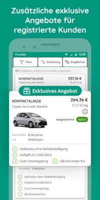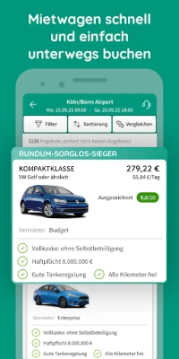 • Auf einen Blick vergleichst Du in unserer App bis zu drei Mietwagen-Angebote miteinander. Spare Dir das Wechseln zwischen den Tabs und finde Deinen Favoriten unter hunderten von Autos jetzt noch schneller.